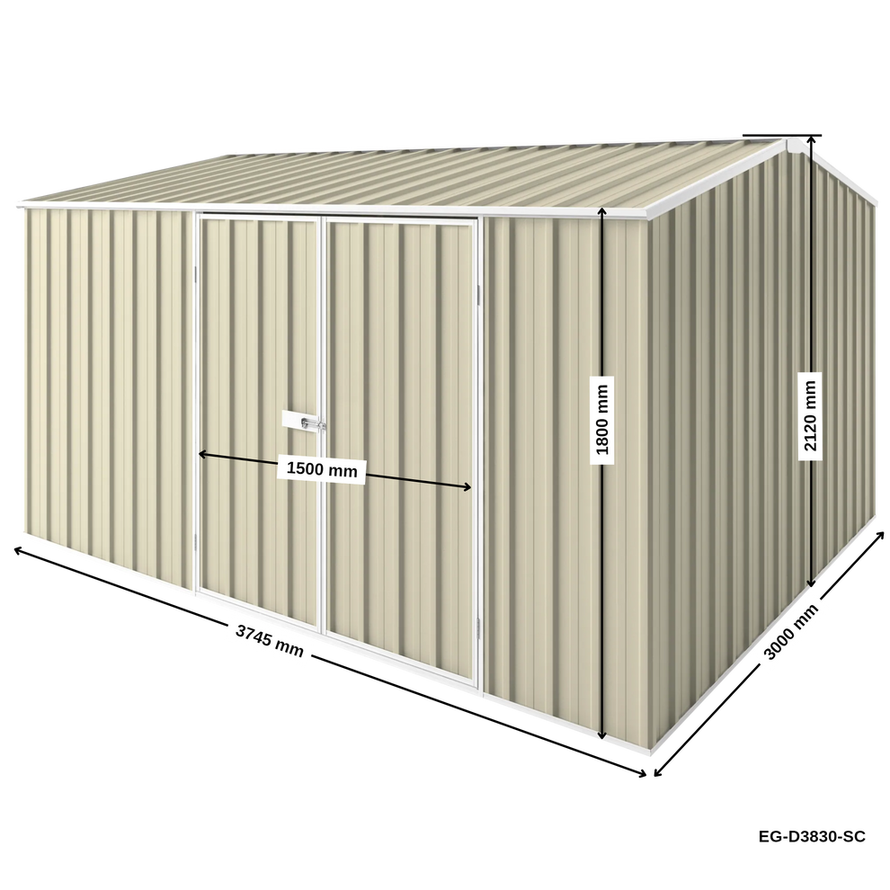 This 3.75m wide x 3.00m deep x 1.80/2.10m height door/peak garden storage shed is the perfect solution to house anything from small cars to garden equipment such as a ride on lawn mowers and even smaller supplies such as wheelbarrows, chainsaws, rakes, shoves etc. The biggest benefit of this Easy Gable Roof model is that it comes with 1.50m hinged double doors allowing for easy access and a greater workstation. With a peak height of 1.97m and a wall height of 1.80m, the additional space means you can store anything from bikes, wheelbarrows and chainsaws satisfying the most serious DIY enthusiast. The door is braced to ensure the integrity of your shed structure and is designed to allow easy access to your shed's contents. Our door locks use a pad bolt and hasp, which is a secure form of locking. You also have the option of adding a padlock to the door for added security at your own discretion. The more traditional pitch shed is the idealistic solution for anyone needing extra storage.