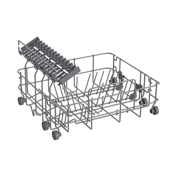 Get a full 360-degree clean with the powerful dual swivel spray arms, which work together to provide powerful water coverage from both the upper and lower spray arms for a thorough clean. The rolling dish rack allows for easy loading and features foldable racking to create extra space for larger items. Includes a cutlery basket to keep utensils organised.